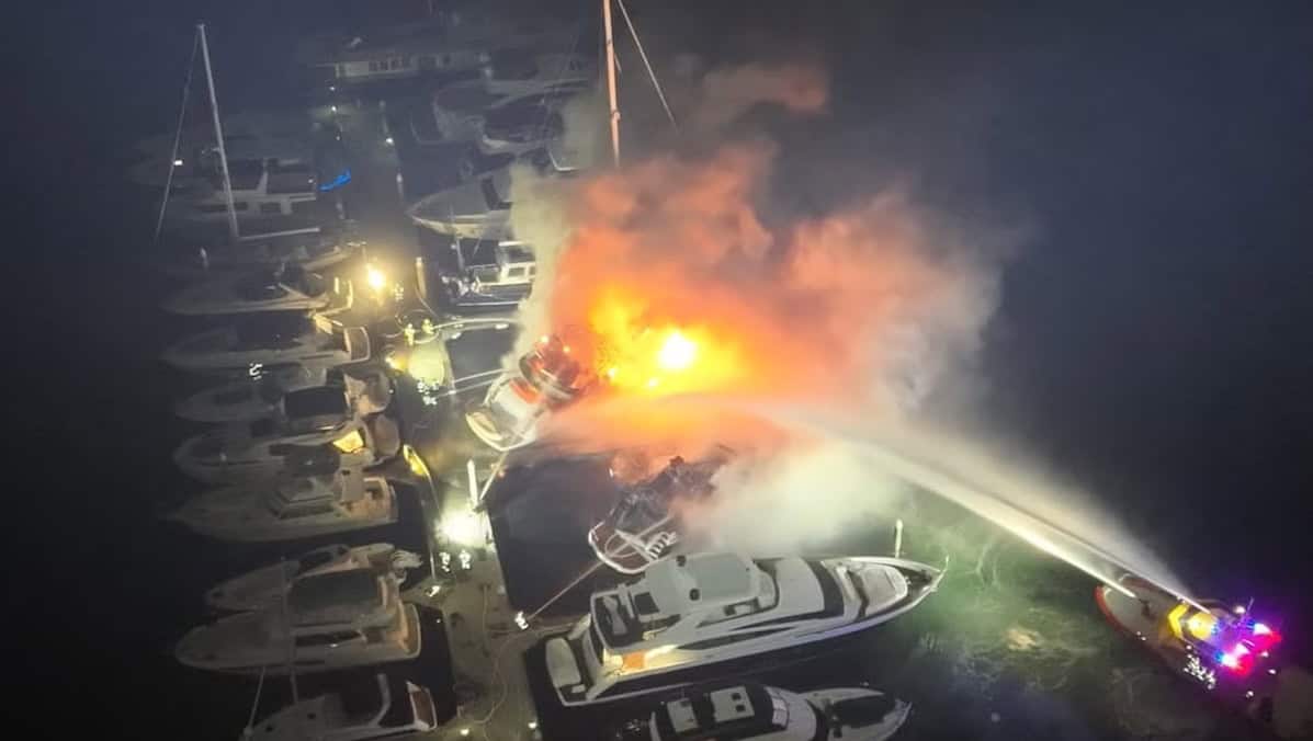 The blaze broke out early Friday at the marina which is a berthing hub for some of the city’s most expensive vessels with the fire rapidly spreading among the moored boats.